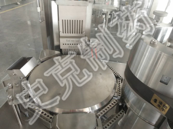 5、配備粉體物料充填機構(gòu),使粉體物料經(jīng)過膠囊填充料倉裝置連續(xù)均勻強制下料至膠囊填充區(qū);